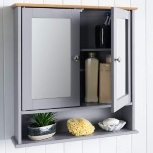 This space saving bathroom cabinet was manufactured in Fujian, China. The product was wall amounted with sturdy wood frame, with adjustable shelf perfect to bathroom small area.