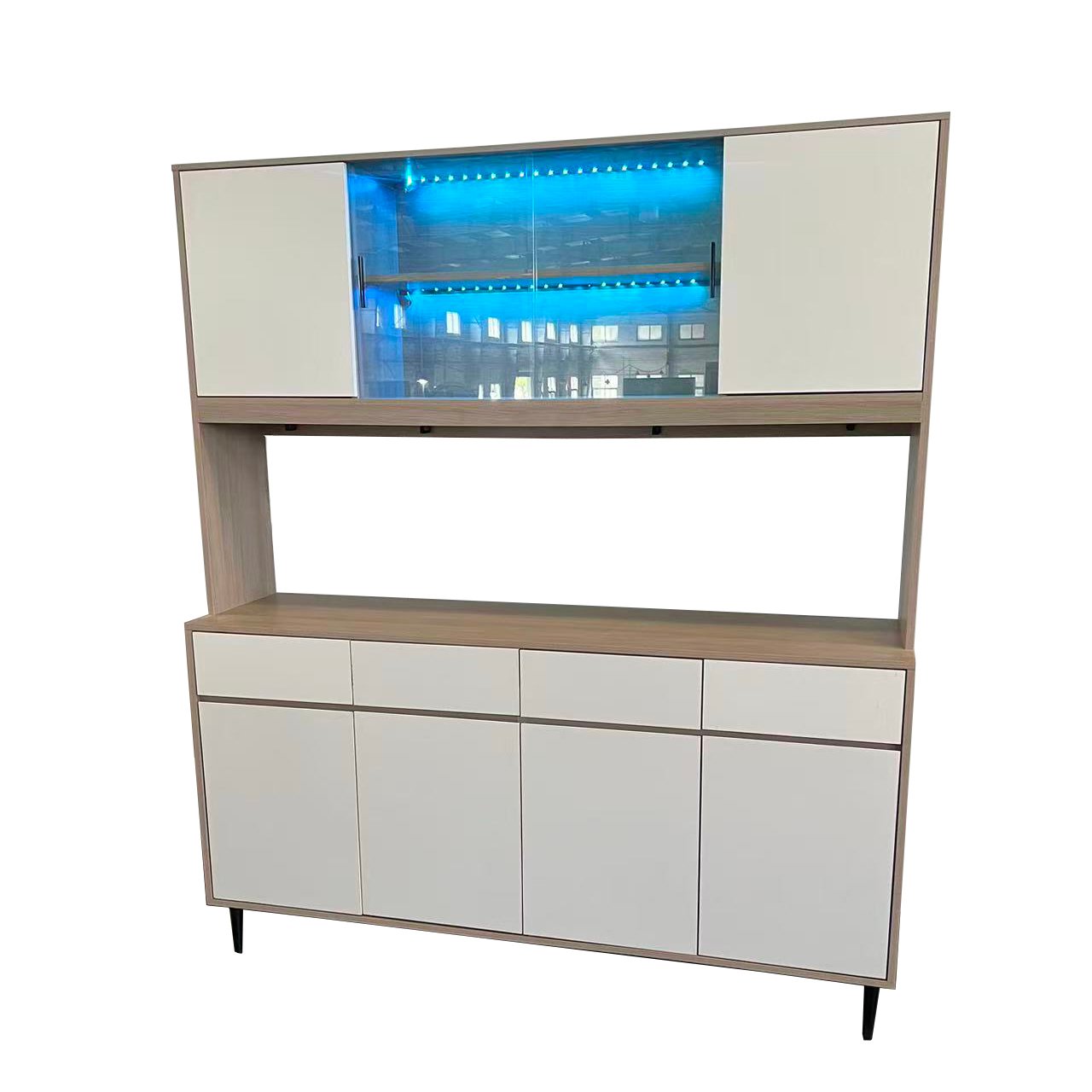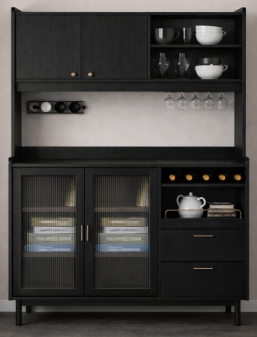 Wooden Kitchen Furniture Pantry with Storage Shelf and Modern Sideboard Cabinet with Shelves for Dining Room or Living Room