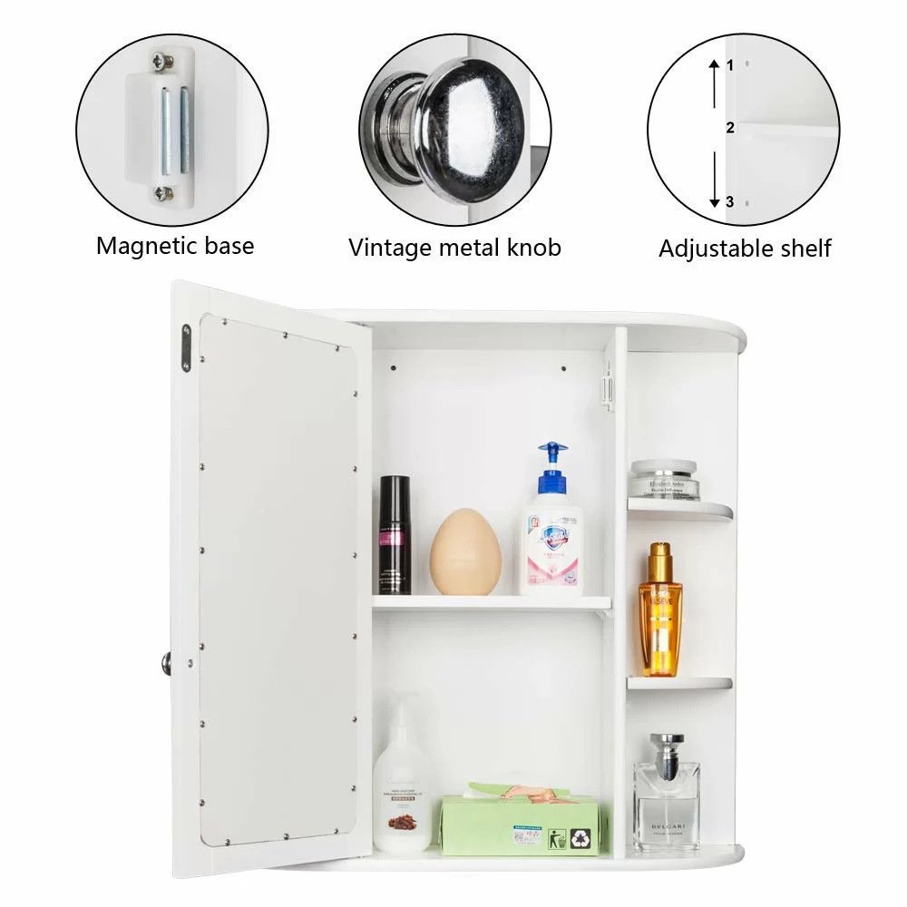This space saving bathroom cabinet was manufactured in Fujian, China. The product was wall amounted with sturdy wood frame, with adjustable shelf perfect to bathroom small area.