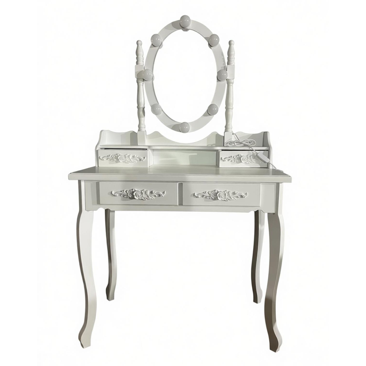 Elegant Storage Drawers Mirror Stool Handcrafted Makeup Desk For Bedroom