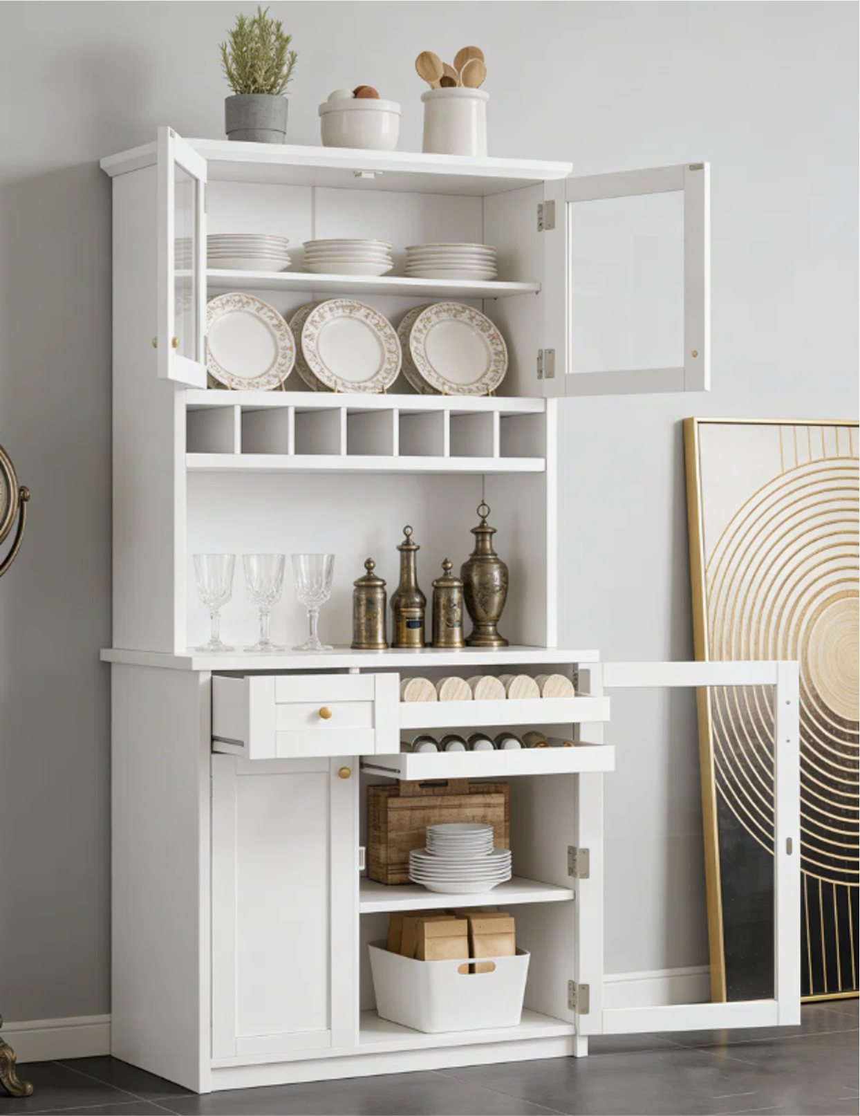 Design Style: Glass door with wine rack and drawer