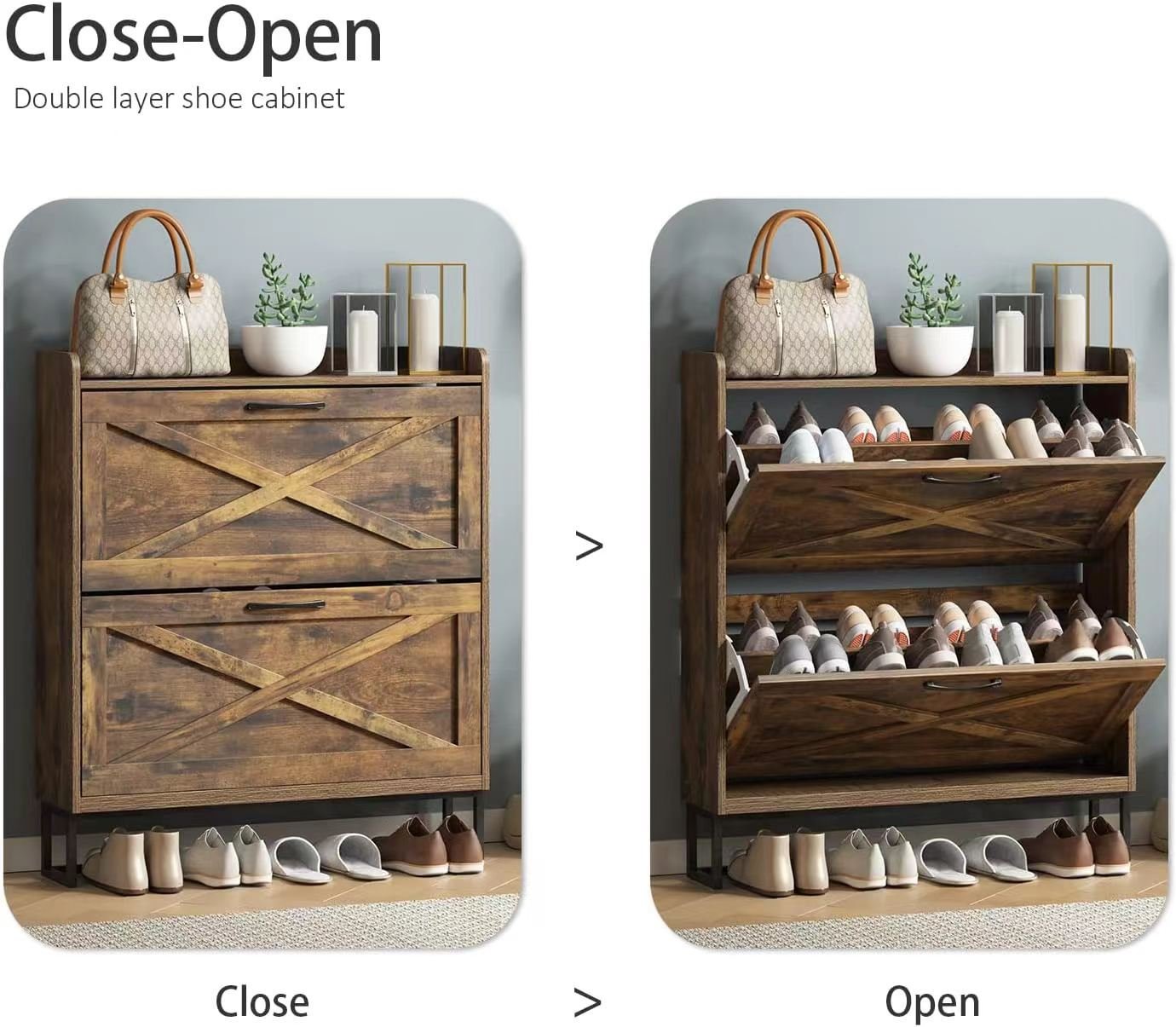 Modern MDF Wood Shoe Rack Simple Design Home Furniture Easy Install Foldable Entryway Storage Cabinet