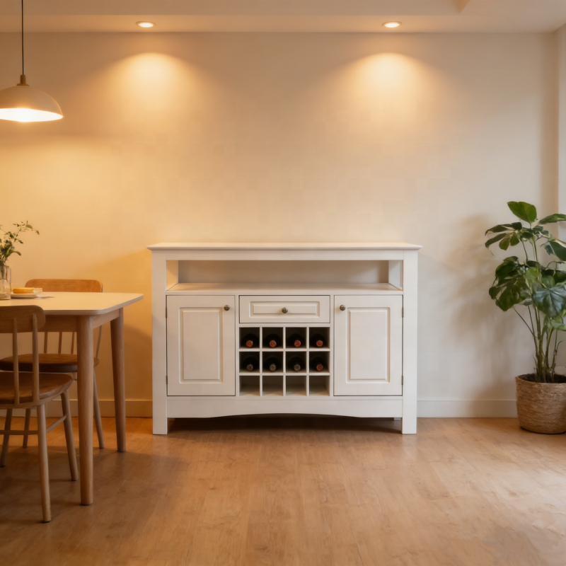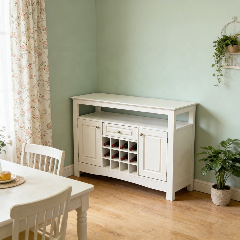 Buffet,Large Capacity Storage Cabinet manufactured in Fujian, China. The product is designed for kitchen and dining room storage use. The open shelf provides practical storage space for kitchen items.
