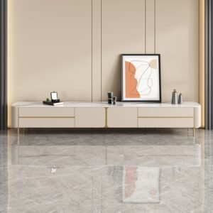 Bring modern elegance to your living space with this luxury TV unit cabinet, designed for style and function. Made with a mix of MDF and solid wood, this white TV stand features a sleek design with glass accents – perfect for modern homes, hotels, or apartments.