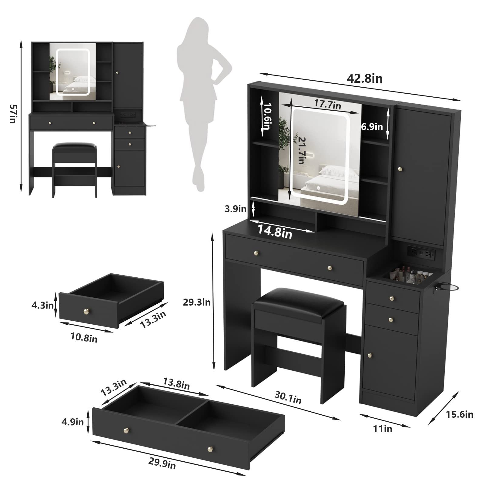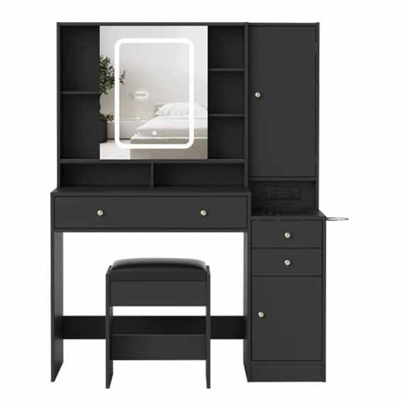 Elevate your bedroom with our Luxury Black Dressing Table Set, crafted from high-quality MDF wood for durability and beauty.This black vanity set is both a functional storage solution and a charm craftsmanship.